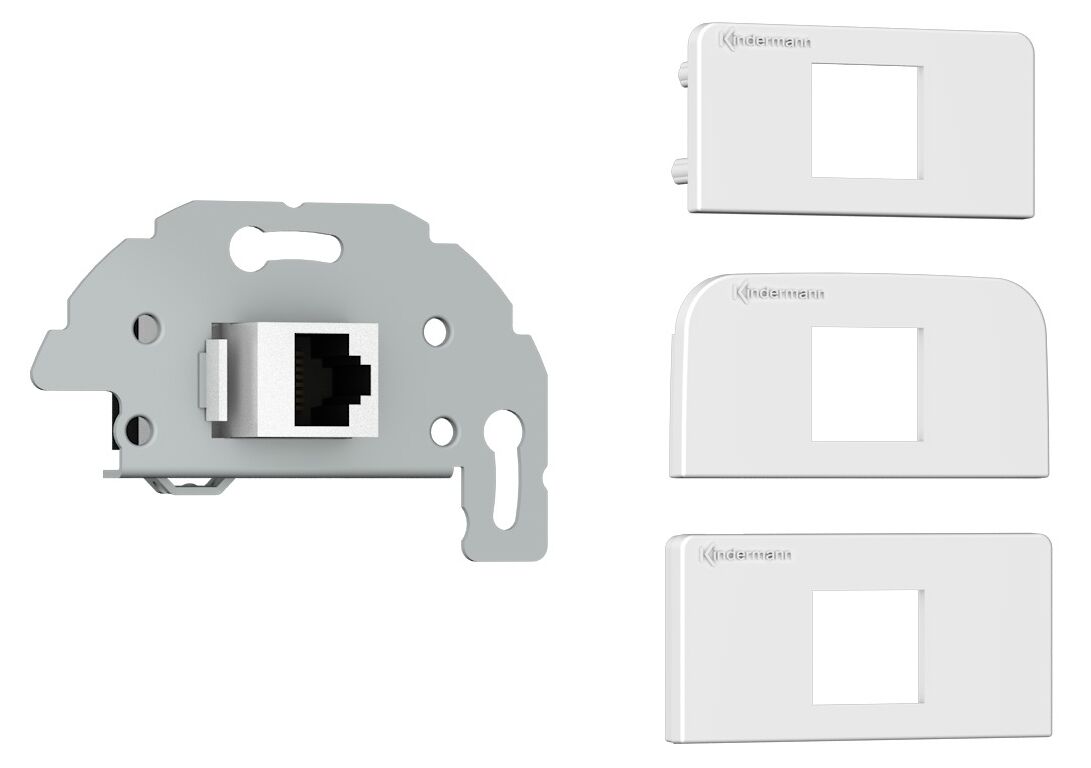 - Frontblenden in drei Größen, für Schalterprogramme mit dem Innenmaß 50 x 50 mm, 54 x 54 x mm und 55 x 55 mm