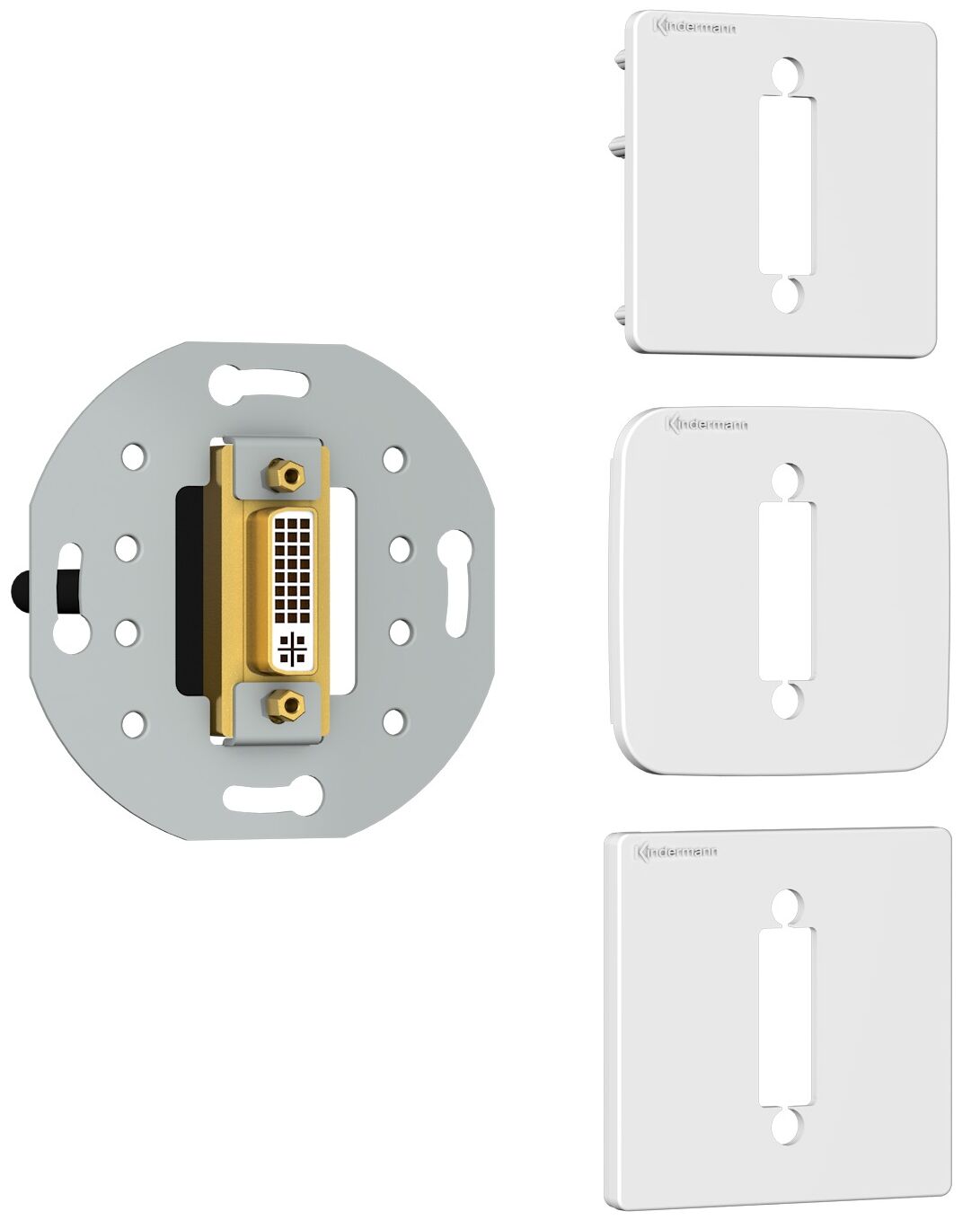 - Frontblenden in drei Größen, für Schalterprogramme mit dem Innenmaß 50 x 50 mm, 54 x 54 x mm und 55 x 55 mm