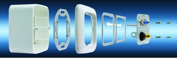 Montagerahmen für Anschlussblenden (7441-xxx / 7444-xxx), wenn diese für eine Wanddose genutzt werden.